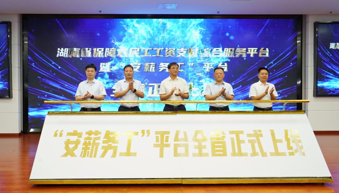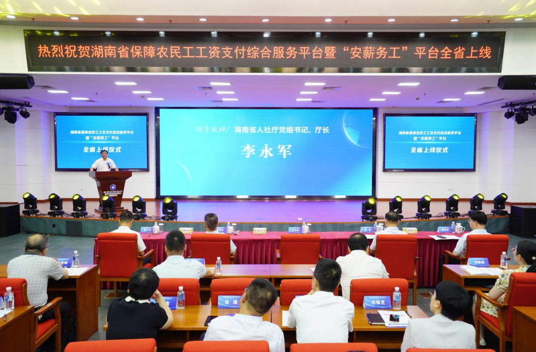 7月12日上午,湖南省保障农民工工资支付综合服务平台暨“安薪务工”平台全省上线仪式在长沙举行,“安薪务工”平台依托已建成的全省农民工工资支付监控预警平台,在全国率先推出省级农民工工资保证金线上监管服务。省根治拖欠农民工工资工作领导小组副组长、省人社厅党组书记、厅长李永军,中国建设银行湖南省分行党委书记、行长文爱华出席上线仪式并讲话。省人社厅、省交通厅、省水利厅、省住建厅、人民银行长沙中心支行、湖南银保监局及建行湖南省分行等相关领导出席上线仪式。