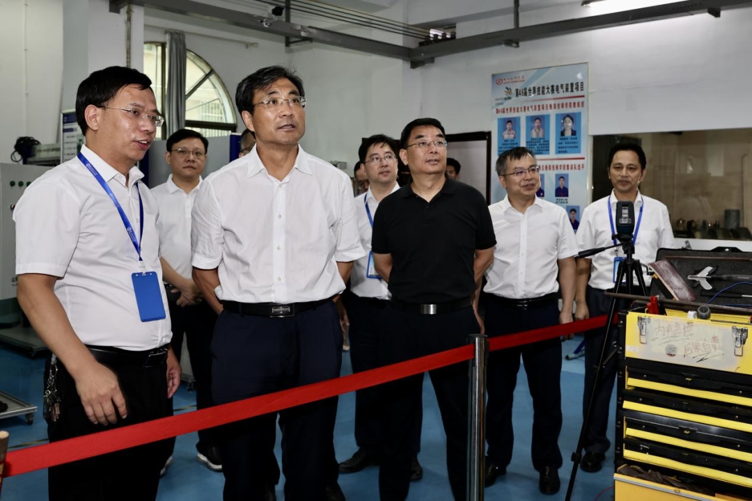 在衡阳技师学院,李永军实地查看了学院电气装置项目、工业控制项目、光电技术项目、信息网络布线项目、车身修理集训基地以及相关实训基地、中心等,与学院参赛选手、教练及有关工作人员交流互动,勉励他们坚定信心、积极备赛,并预祝他们取得优异成绩。