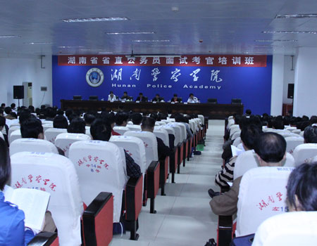 5月25-26日,省公务员局在湖南警察学院举办了为期两天的省直公务员面试考官培训班。国家公务员局考试录用司副司长盛桂英详细介绍了公务员考试录用制度和政策,中组部、人社部公务员录用考试专家、盐城师范学院副院长陈社育为学员讲解了结构化面试技术的理论与实践,并就结构化面试进行了录像观摩与评分演练,北京智鼎咨询公司高级咨询师吴燕介绍了现代人才测评新技术。省人力资源和社会保障厅副厅长、省公务员局局长易仲民同志对我省公务员考录工作特别是面试工作进行了介绍,对培训班的学员提出了要求,并亲自参加了培训。参加培训的400多名学员,是根据《湖南省考试录用公务员面试考官管理暂行办法》的规定,由省直各单位和在长各高校推荐并经省公务员主管部门审核同意的公务员面试考官候选人。