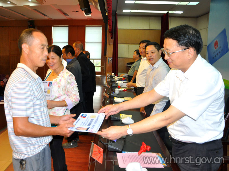 湖南省人力资源和社会保障厅党组成员、省社保局局长陈范勋出席发放仪式并讲话,娄底市委常委、常务副市长何文君做重要讲话并宣布娄底市社会保障卡发放工作正式启动。湖南省人社厅信息中心主任吴欣、娄底市政府副秘书长伍鹄、市人社局局长李赛斌、市财政局局长曹育明、湖南信用联社娄底办事处主任蒋跃民、新化县委副书记邓敏炉、市人社局副局长曾跃良等领导以及各县市区人社部门、新化县各乡镇办、信用联社各网点负责人及部分参保人员代表等参加了首发仪式。