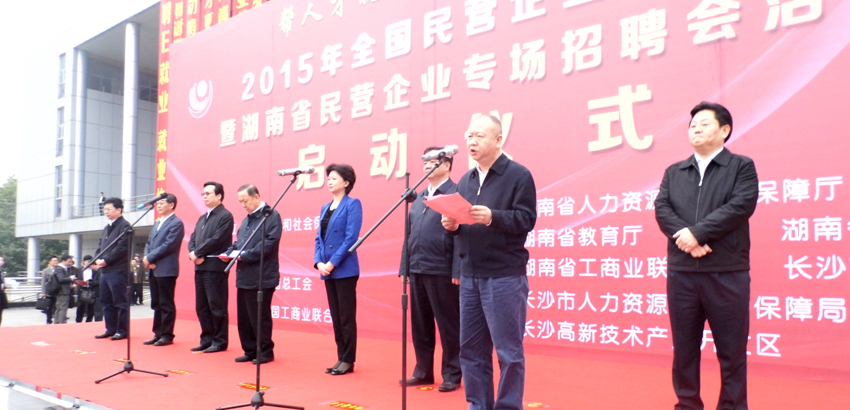 4月21日,主要面向2015届高校毕业生,以“帮人才就业,促民企发展”为主题,由人力资源社会保障部、教育部、全国总工会、全国工商联联合开展的“2015年全国民营企业招聘周”活动,今天在湖南长沙高新技术开发区正式启动。涉及电子信息、新材料、生物医药、节能环保等产业的近500余家民营企业在现场开展招聘,全国31个省、市、自治区和新疆生产建设兵团同时在当地启动招聘活动。
