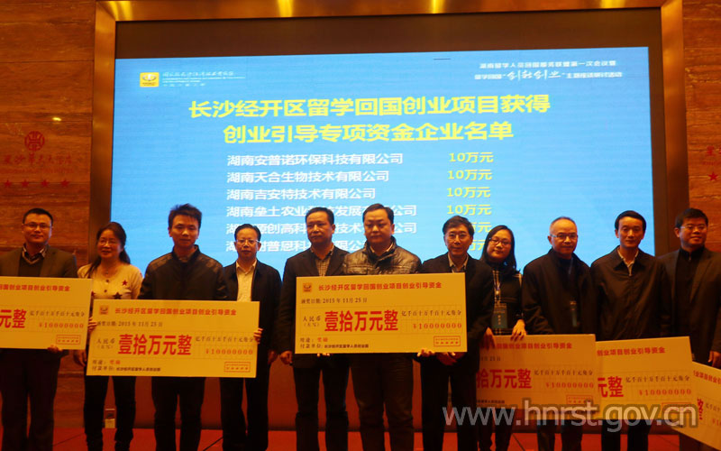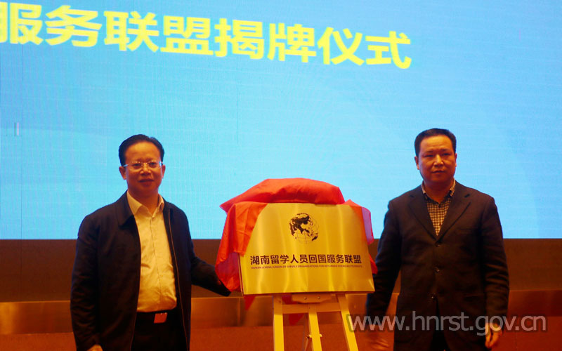 11月25日,湖南留学人员回国服务联盟第一次工作会议暨留学回国创新创业主题座谈研讨活动在长沙举行。省人社厅党组成员、副厅长黄赞佳,致公党湖南省委专职副主委应若平,省人社厅党组成员、省外国专家局局长谢春等出席活动,并为首批留学人员回国服务联盟成员单位代表授牌。