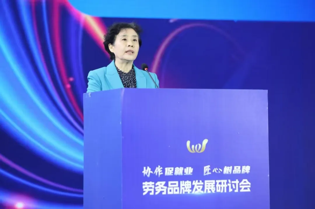 中国就业促进会秘书长李燕萍做主旨报告《聚焦“3+2”发展元素推动劳务品牌转型升级高质量发展》
