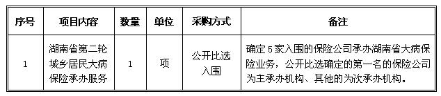 项目名称:湖南省第二轮城乡居民大病保险承办服务项目