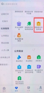 请打开并登录智慧人社APP或微信公众号,在“服务”页面找到“技能提升补贴申请”(如下图所示),点击进入。