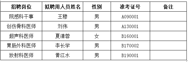 根据《南华大学附属南华医院2020年第二批公开招聘公告》及有关规定,经报名、资格审查、笔试、面试、体检、考察等程序,经公开招聘工作领导小组集体研究决定,确定王穆等5名同志为2020年南华大学附属南华医院第二批公开招聘拟聘用人选,现予以公示。