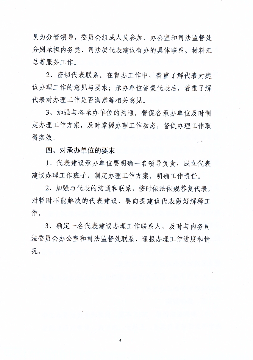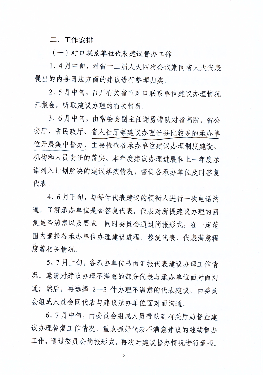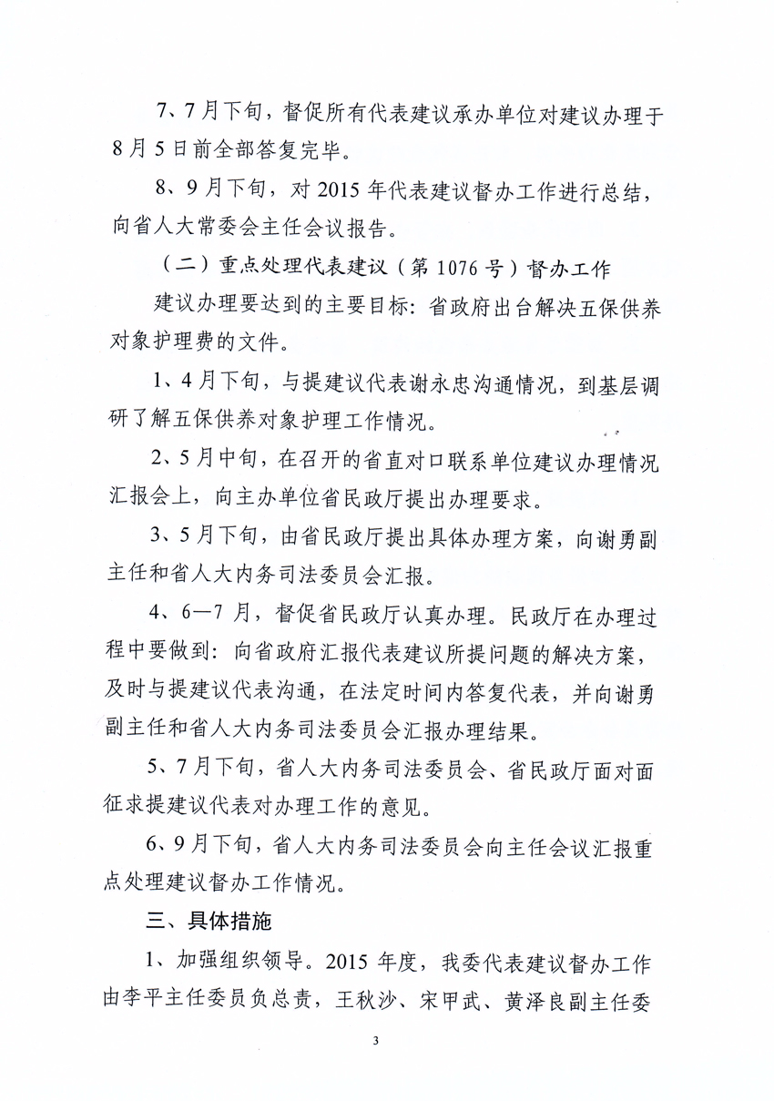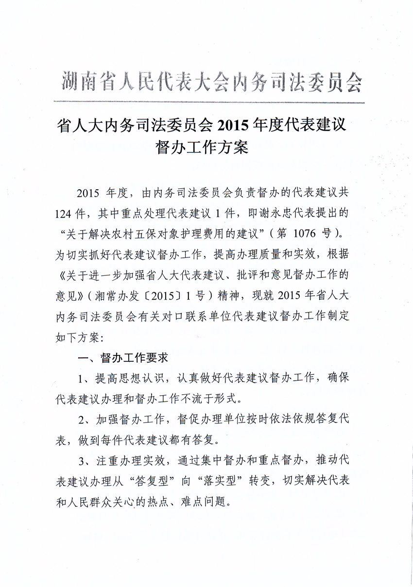 省人大内务司法委员会2015年度代表建议督办工作方案
