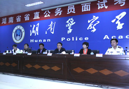 5月25-26日,省公务员局在湖南警察学院举办了为期两天的省直公务员面试考官培训班。国家公务员局考试录用司副司长盛桂英详细介绍了公务员考试录用制度和政策,中组部、人社部公务员录用考试专家、盐城师范学院副院长陈社育为学员讲解了结构化面试技术的理论与实践,并就结构化面试进行了录像观摩与评分演练,北京智鼎咨询公司高级咨询师吴燕介绍了现代人才测评新技术。省人力资源和社会保障厅副厅长、省公务员局局长易仲民同志对我省公务员考录工作特别是面试工作进行了介绍,对培训班的学员提出了要求,并亲自参加了培训。参加培训的400多名学员,是根据《湖南省考试录用公务员面试考官管理暂行办法》的规定,由省直各单位和在长各高校推荐并经省公务员主管部门审核同意的公务员面试考官候选人。