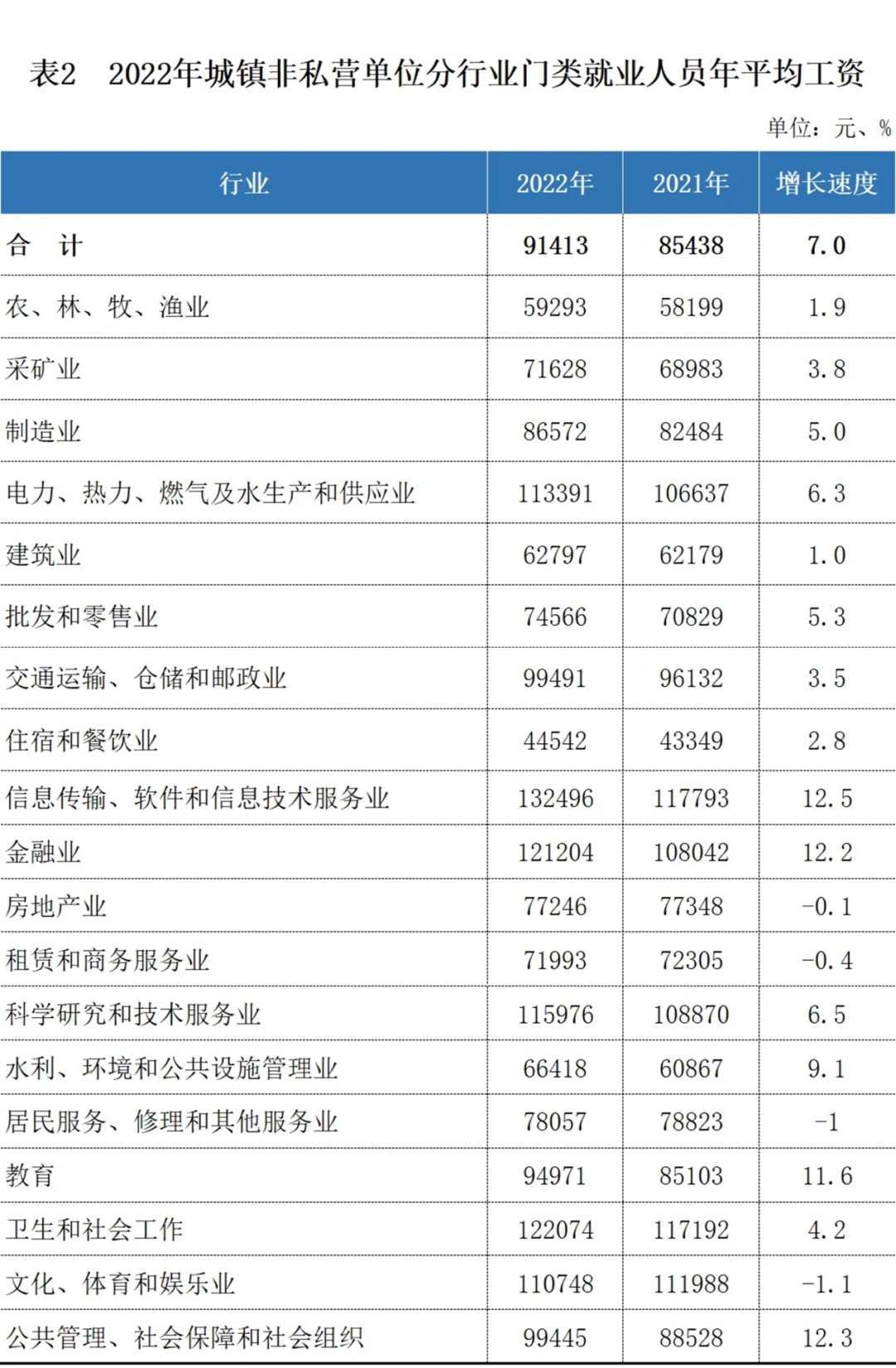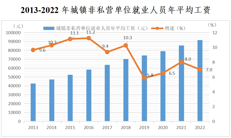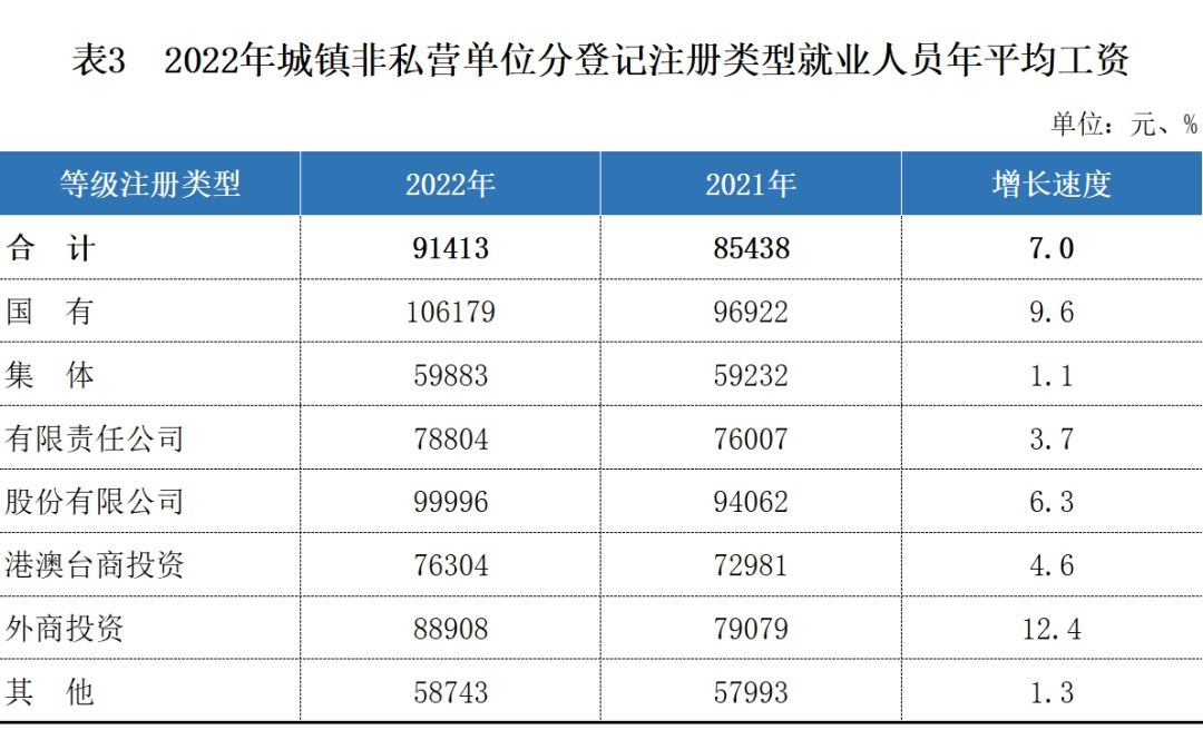 2022年城镇非私营单位就业人员年平均工资