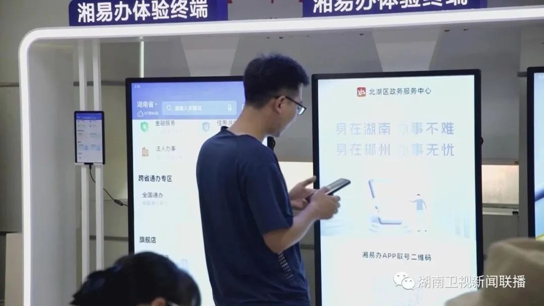 建好用好“湘易办”是2023年省政府重点民生实事。在郴州“湘易办”体验服务中心,用户直接通过触控大屏幕就能全景式完成注册、办理业务。