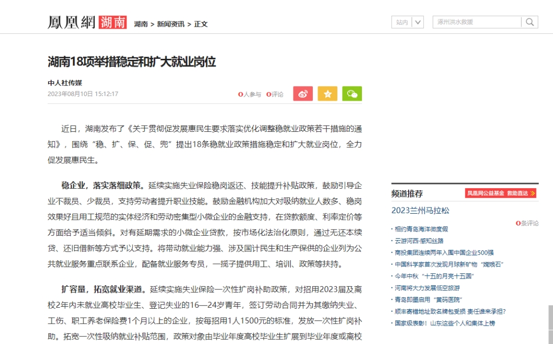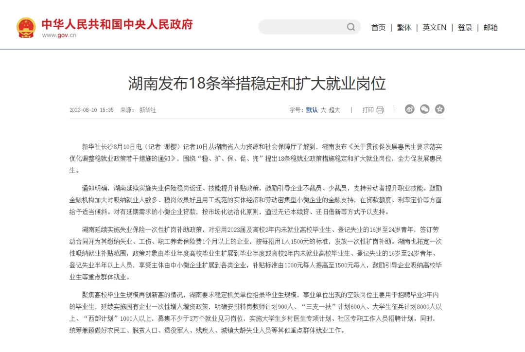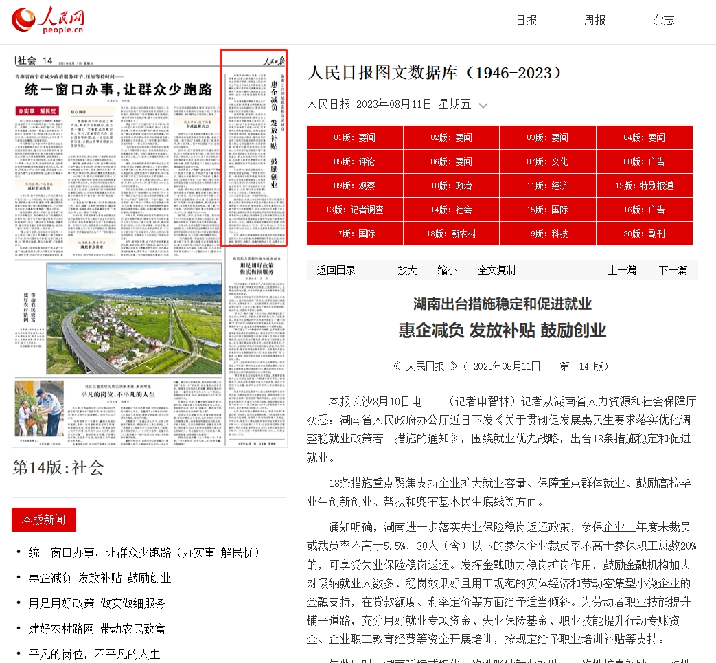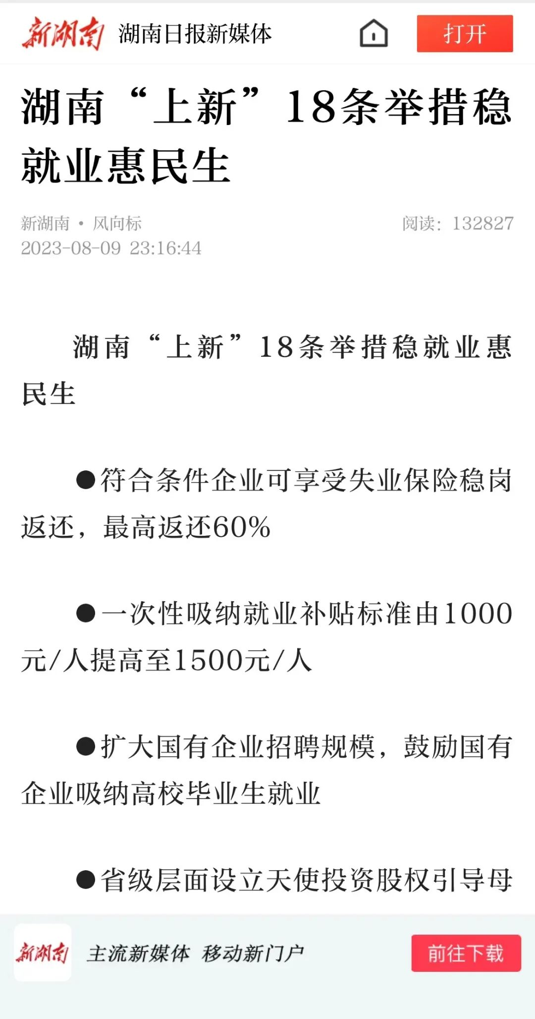 近日,我们“上新”的18条稳就业举措,获得人民日报、新华社、光明网、中国青年网、中国新闻网、中国经济网等中央重点媒体,湖南日报、湖南卫视、新湖南客户端、华声在线、红网等省级主流媒体,以及凤凰网、澎湃新闻等媒体平台集中报道,并引发中国政府网、湖南省人民政府网等转载,社会各界广泛关注。