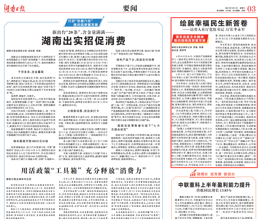 今日,《湖南日报》刊登了省人社厅党组书记、厅长李永军就人社部门如何落实省委全会精神,接受记者采访内容。全文如下: