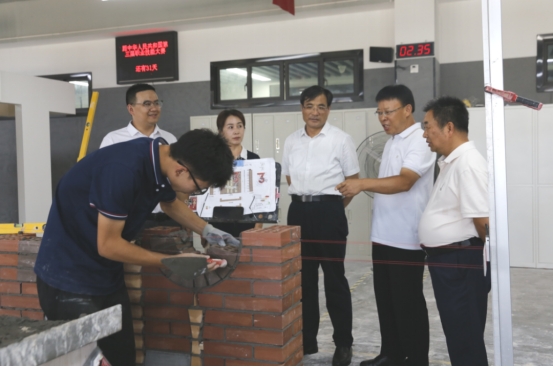 李永军一行实地察看了砌筑、数字建造、抹灰与隔墙系统3个赛项选手操作流程,以及物流与货运代理、区块链技术、精细木工等项目的集训场地,详细了解备赛进展情况并与选手亲切交谈,关切询问训练和生活情况。