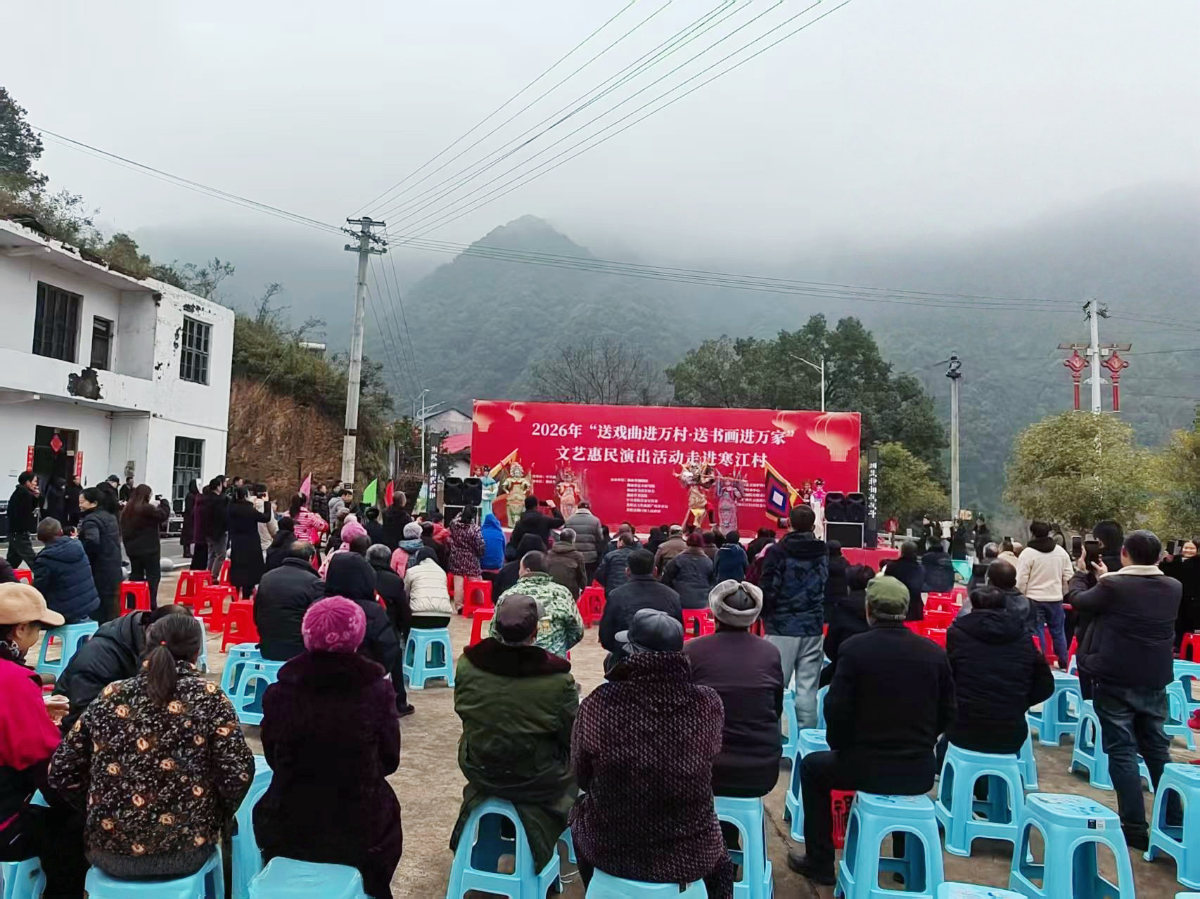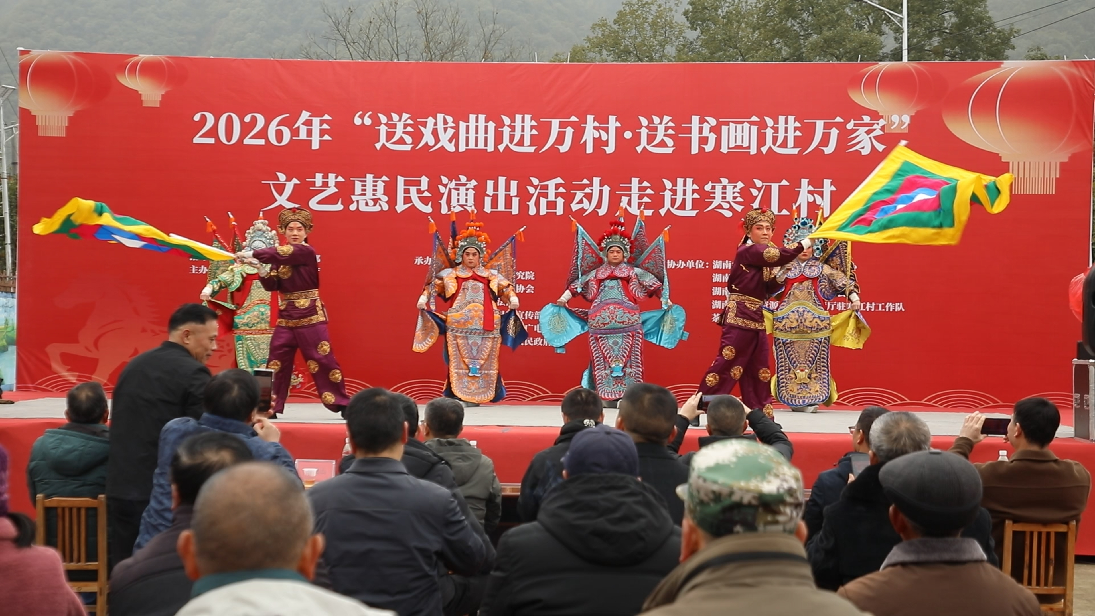 1月23日下午,由省湘剧院等多家省直文艺院团带来的“送戏曲进万村·送书画进万家”演出活动,在茶陵县湖口镇寒江村火热上演,吸引了浣溪、龙下等村的村民扶老携幼前来观看,成为轰动一时的跨村文化大联欢。