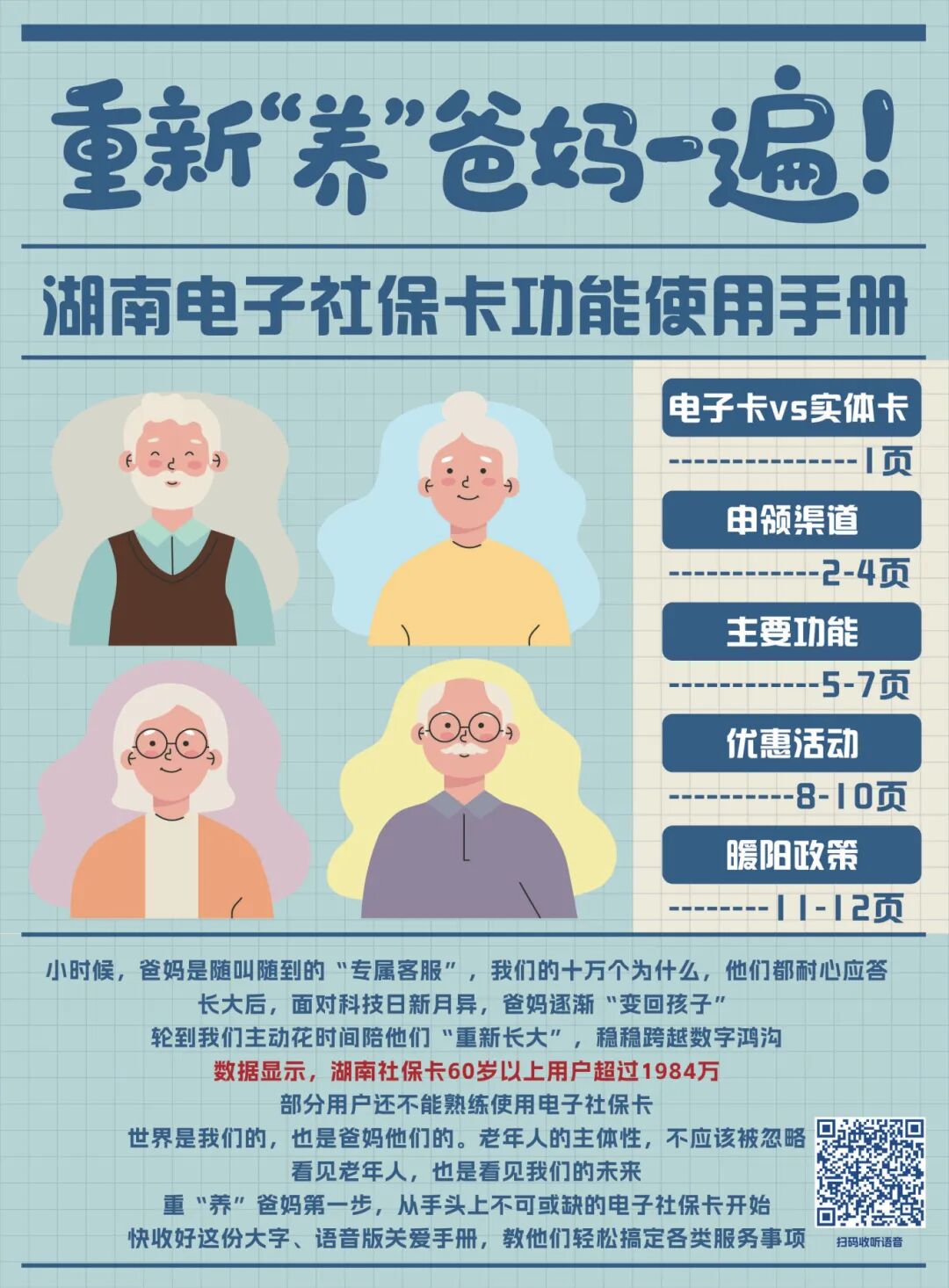 数据显示,湖南社保卡60岁以上老年用户超过1984万;签发电子社保卡4024.52万张,较“十四五”初期增长168.8%。这份看得见、听得懂、学得会的手册,是省人社厅面向他们创新推出的适老化举措,也是民生工作的温度体现,让发展成果惠及每一代人的生动实践。